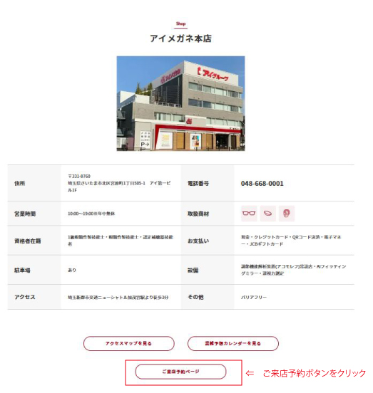 ①店舗検索ページから、ご来店希望の店舗ページにお進みください。