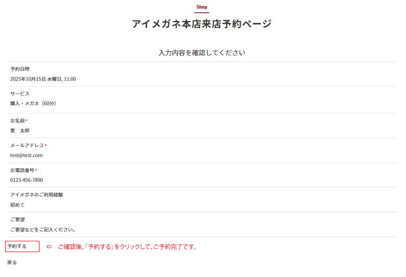 ご登録されたメールアドレスのご予約確認のメールを送信させていただきます。