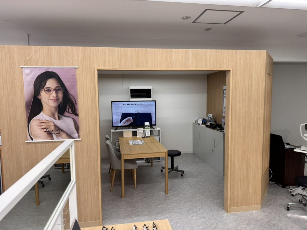 お店は少しコンパクトになりましたが、ゆったりとメガネや補聴器の相談ができるコンサルティングブースや防音室を設置いたしました。