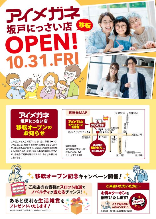 この機会に、ぜひアイメガネ坂戸にっさい店へご来店ください。