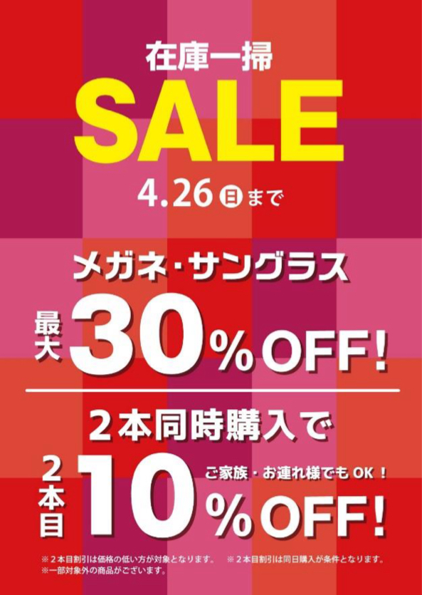 ブランドフレーム・国産フレーム・サングラスも最大で30%OFF🙌