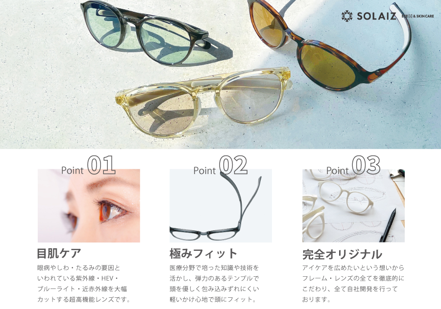 目元を守る、ハイスペック・スキンケアレンズ。 それが「SOLAIZ(ソライズ)」です。