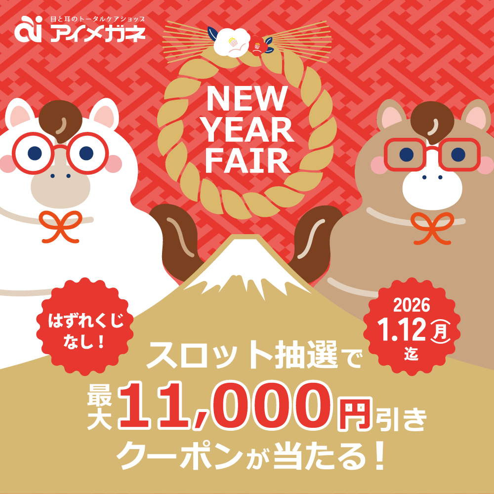 アイメガネエキア谷塚店では1月12日まで《 NEW YEAR FAIR 》を開催しています。