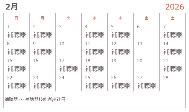 2月の認定補聴器技能者出社日