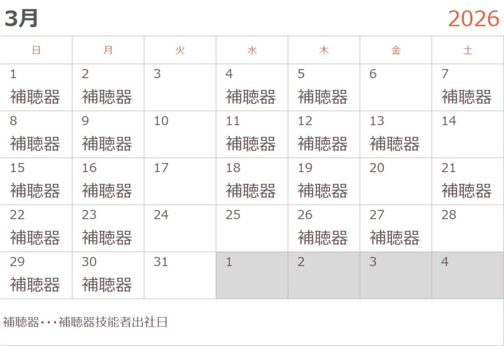 3月の認定補聴器技能者出社日