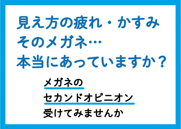 また、アイメガネではメガネのセカンドオピニオンといたしまして、他社でご購入のメガネの相談も承っております。