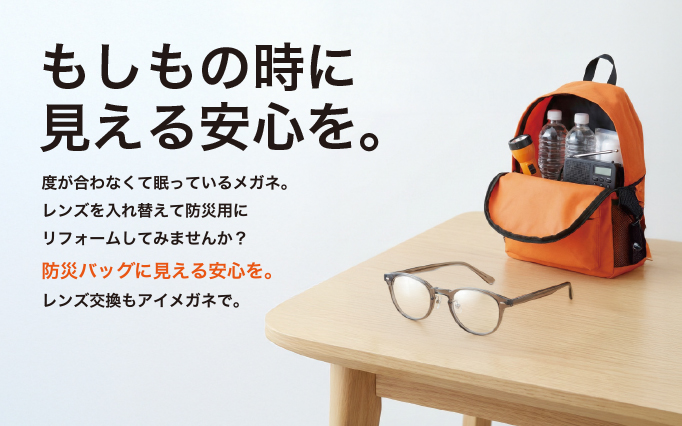 レンズ交換して「防災メガネ」にリフォームしませんか?