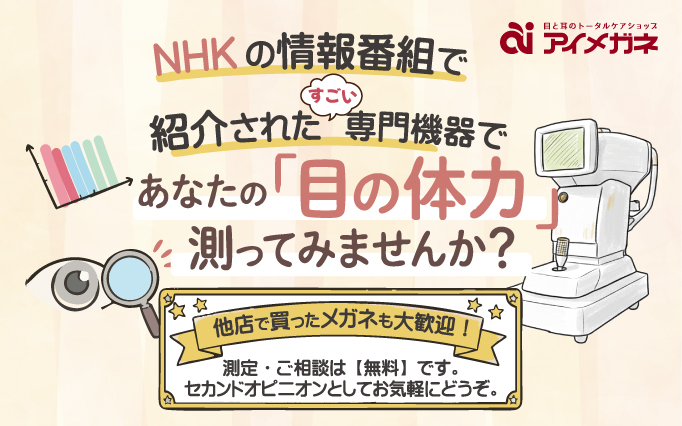 アイメガネではピントを合わせる力「調節力」や疲れ目度合いが分かる最新機器【アコモレフ】をご用意しております!