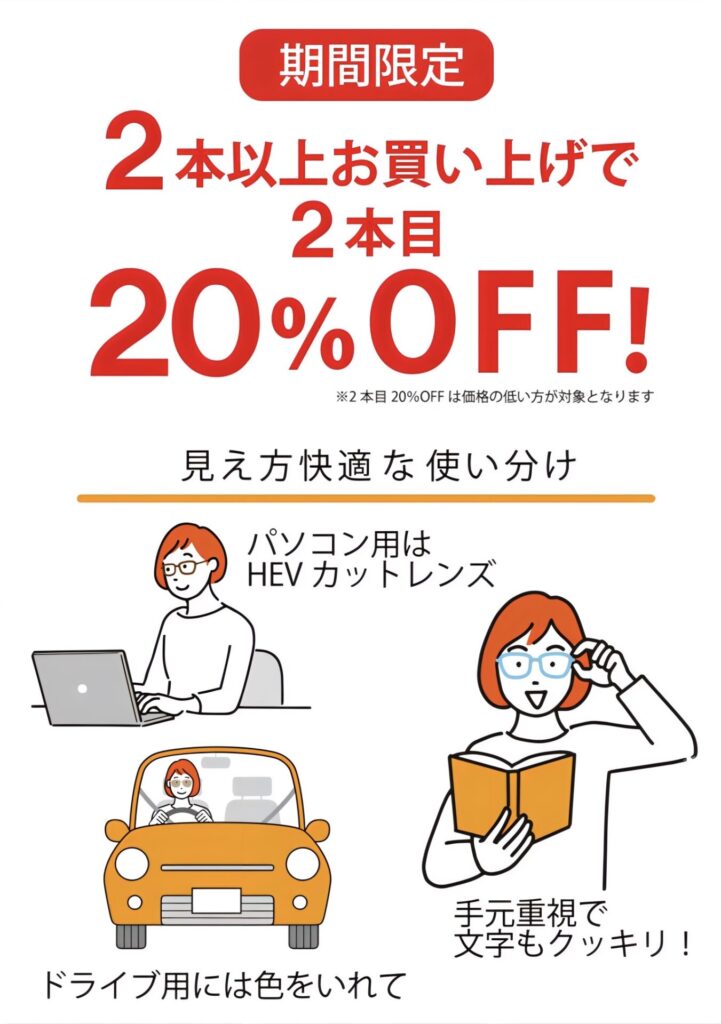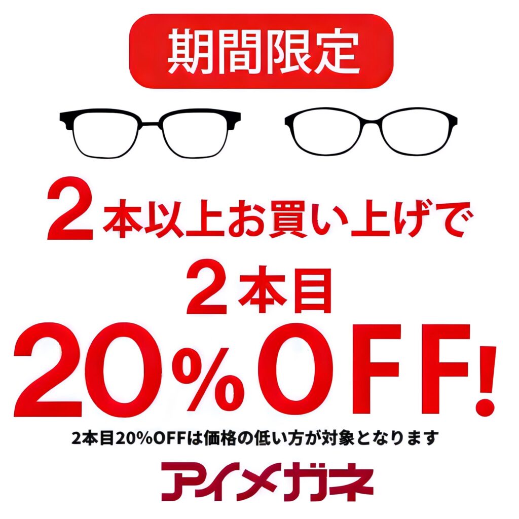 期間限定でメガネ2本目20%OFFセールを開催致します🛍️💡