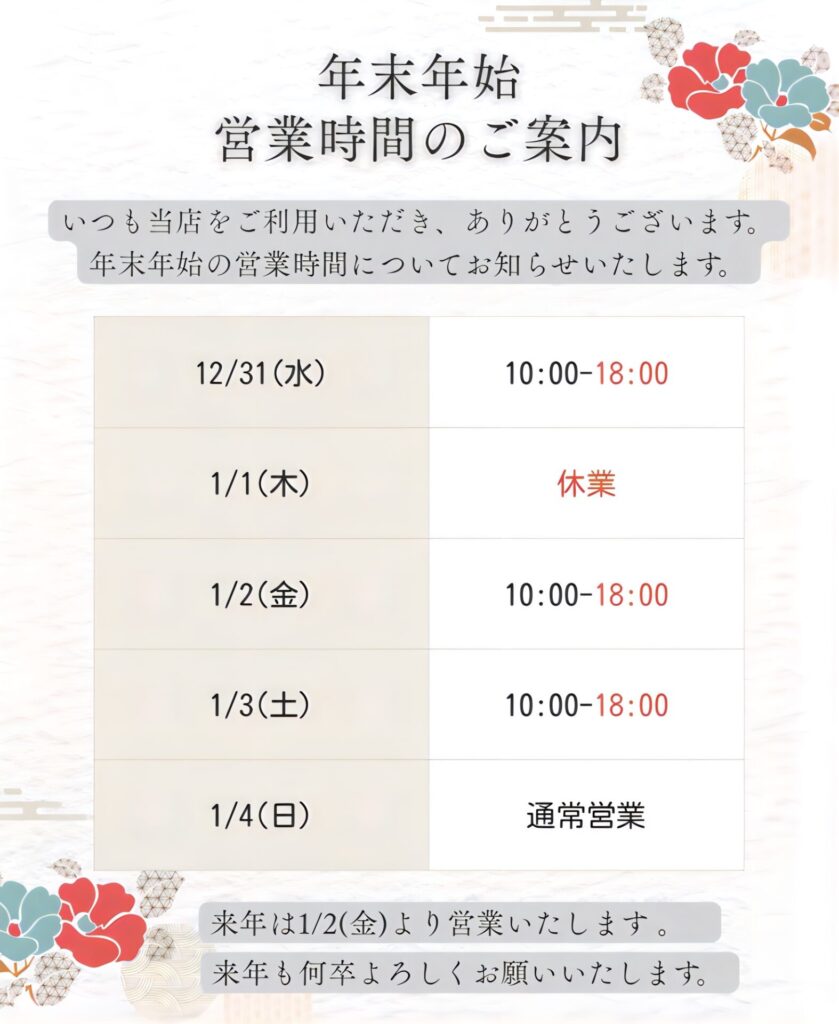 ⛩️ 年末年始営業時間のご案内 ⛩️