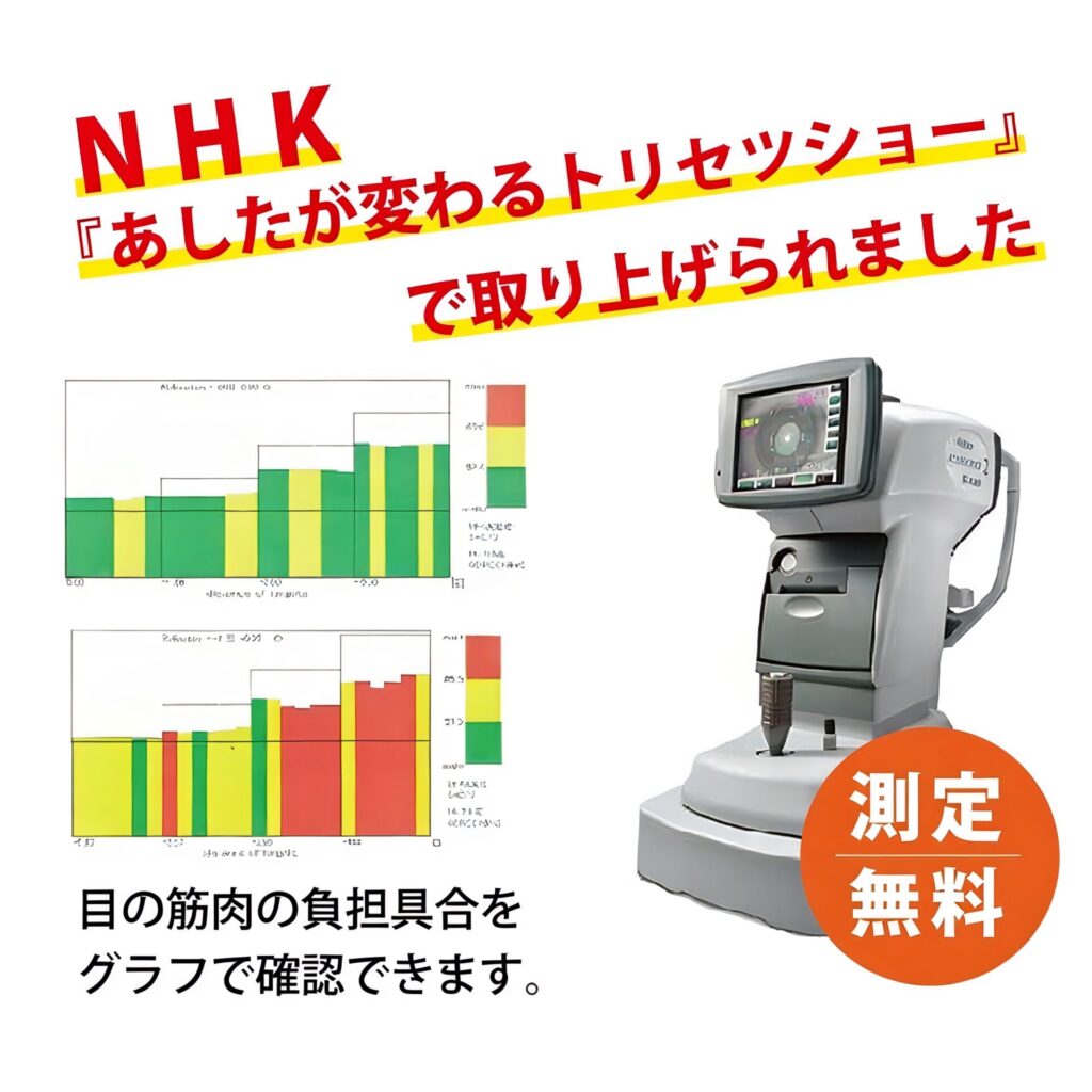 アイメガネではピントを合わせる力「調節力」や疲れ目度合いが分かる最新機器 : 調節機能解析装置 ( アコモレフ ) をご用意しております!