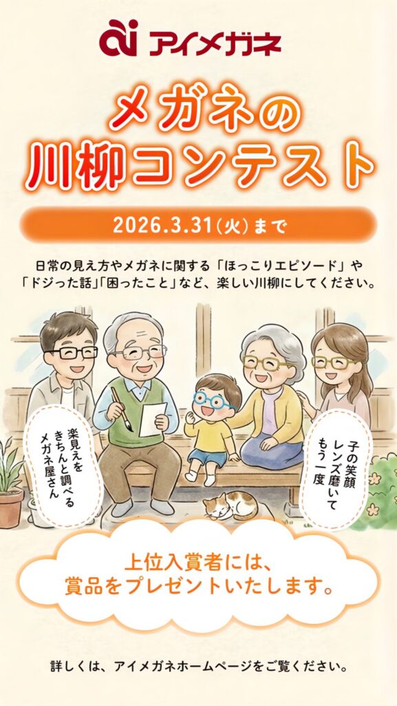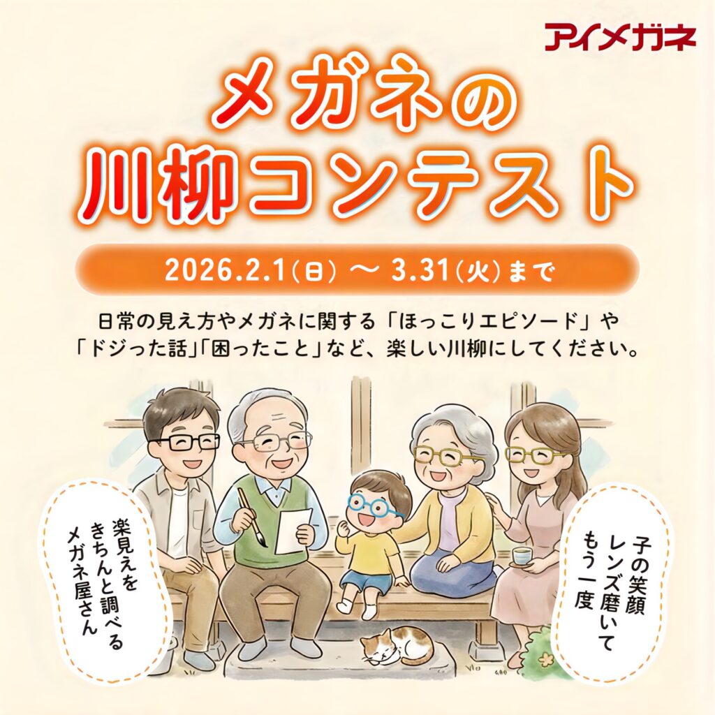 このたびアイメガネでは、日常の「見え方」や「メガネ」にまつわるエピソードを募集する『 メガネの川柳コンテスト2026 』を開催いたします‼️