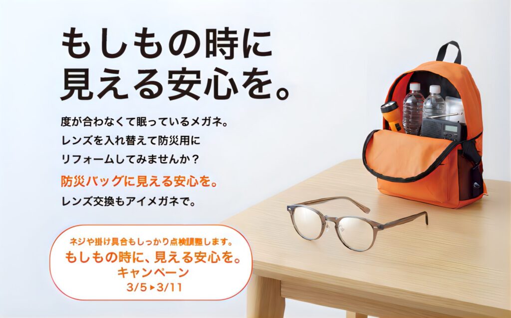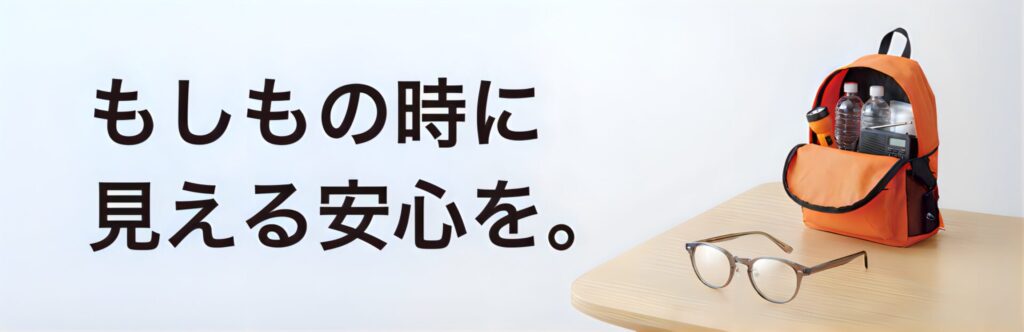 災害バックに予備用のメガネがあると『 もしも 』の時に安心してお使いいただくことができます👓