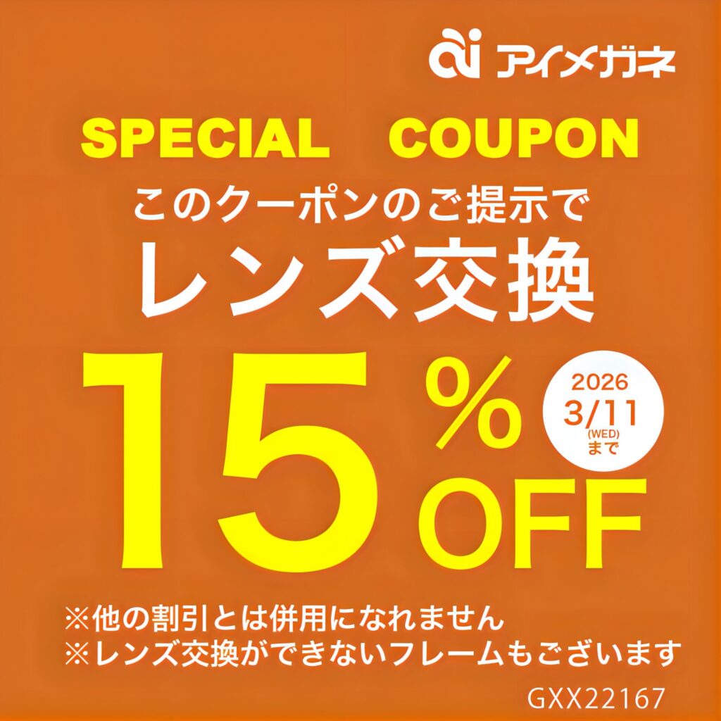 期間内クーポンのご提示でレンズ交換がなんと‼️15%OFFになります🛒🎉